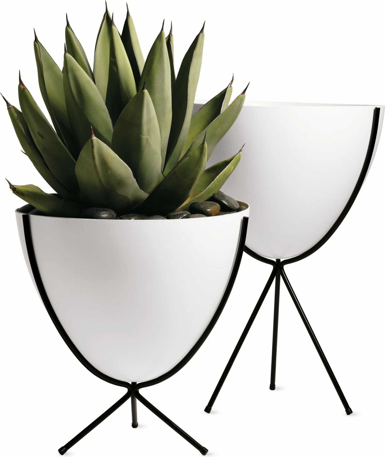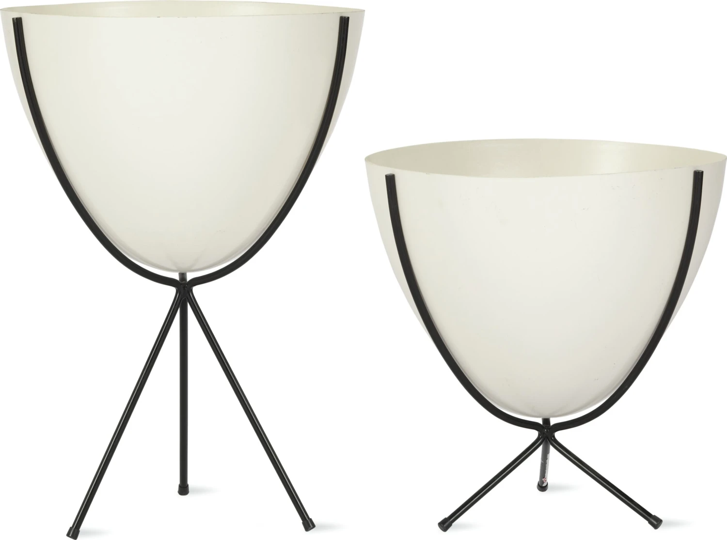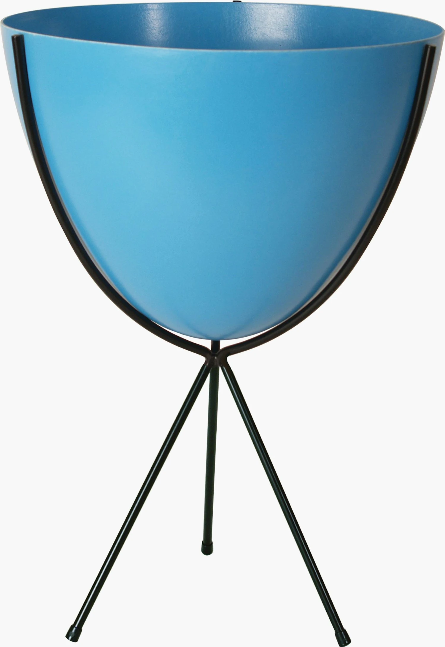 Produced by several companies in the 1950s, this piece was never trademarked, and its designer was never identified. A passionate collector of midcentury modern design and a fan of the original, Kelley Sandidge decided to create her own version of the Bullet Planter (2002) after her search for vintage ones in good condition proved mostly fruitless. Reimagined and trademarked by Sandidge, this rendition is precision-crafted using advanced production methods from lightweight yet durable molded fiberglass perched atop a tripod of powder-coated steel.