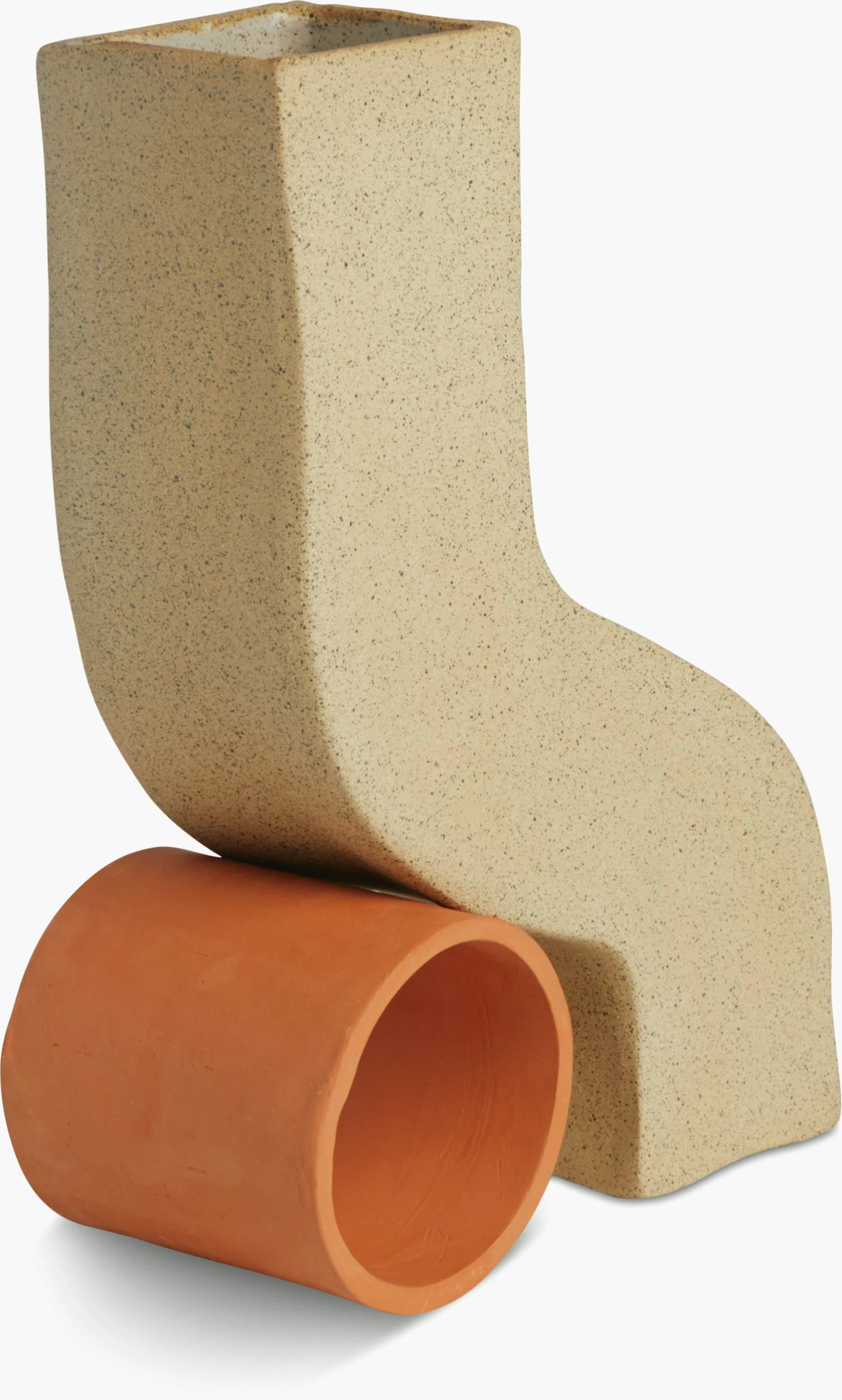 - Two-piece set, consisting of stoneware vase and terracotta base.