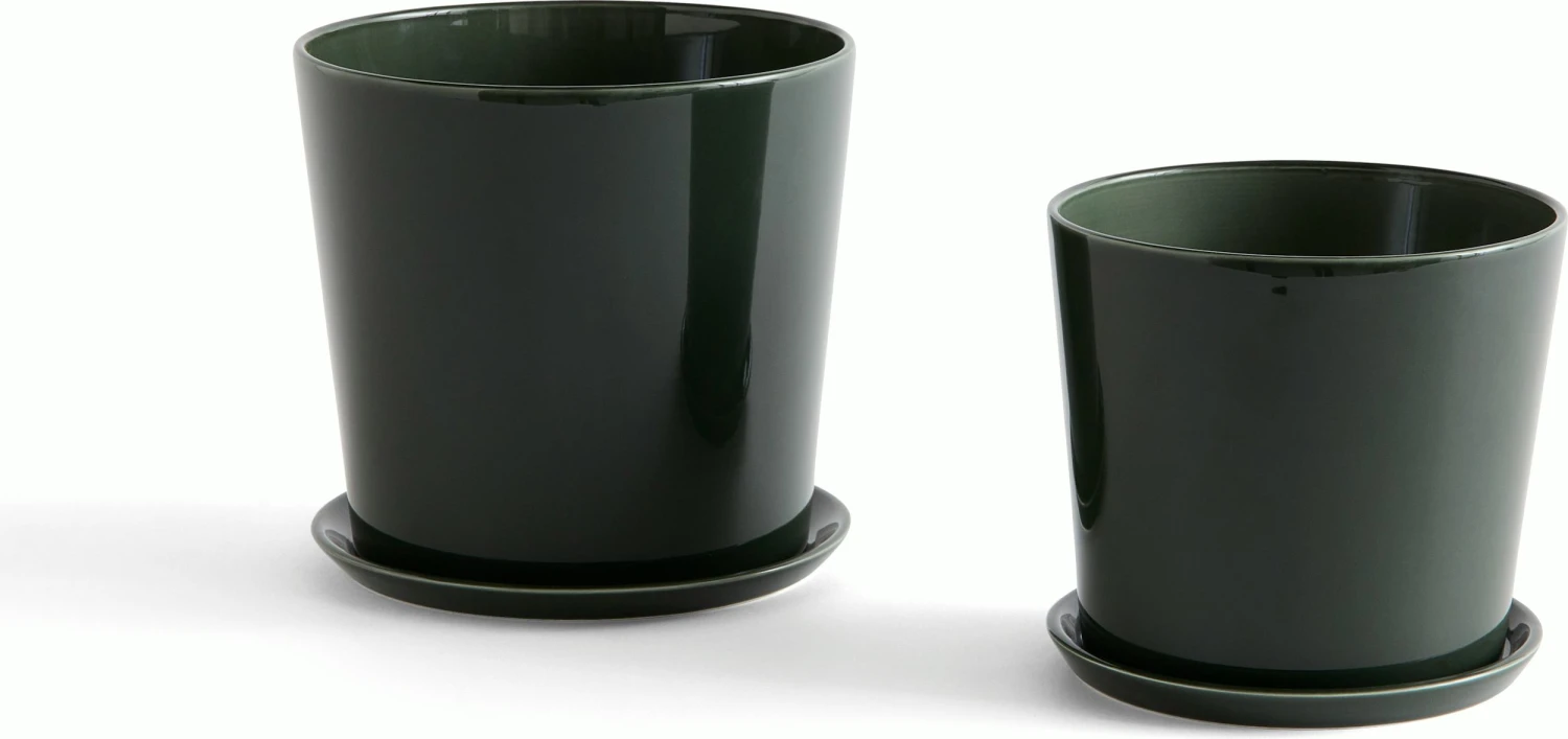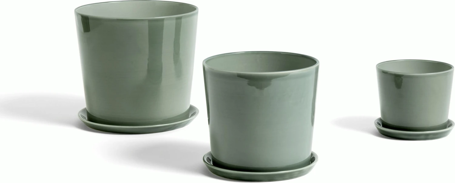 The Botanical Family Set (2018) includes one plant pot and saucer. Mix and match different sizes and colors to create a beautiful backdrop for your plant parenting projects. Botanical is from HAY, the Danish design company established in 2002 by Mette and Rolf Hay, who were driven by a desire to create functional, appealing products for modern daily living. If using a plastic liner (not included) do not fill soil above level of liner, or moisture can penetrate top of pot. Made in Portugal.