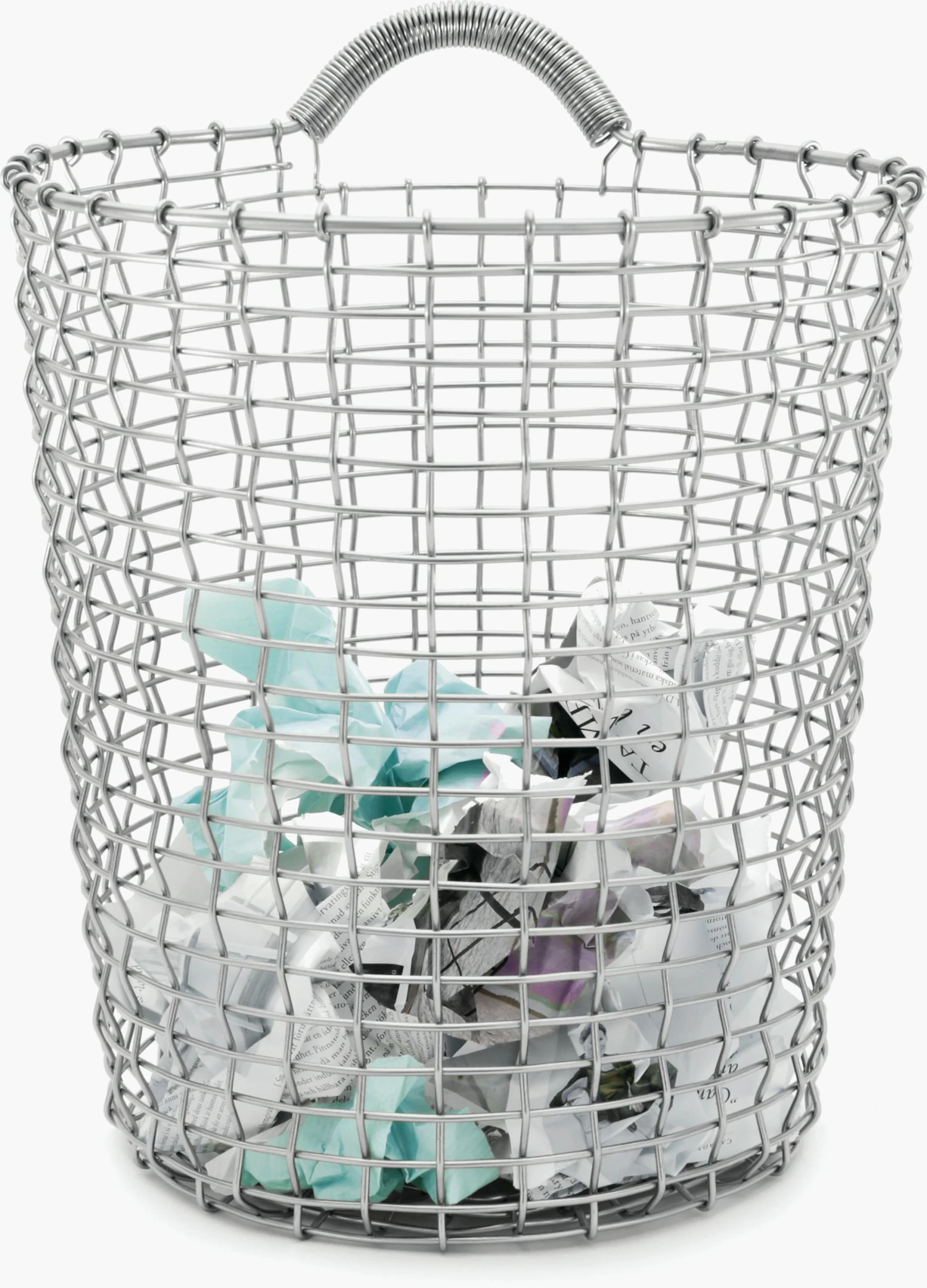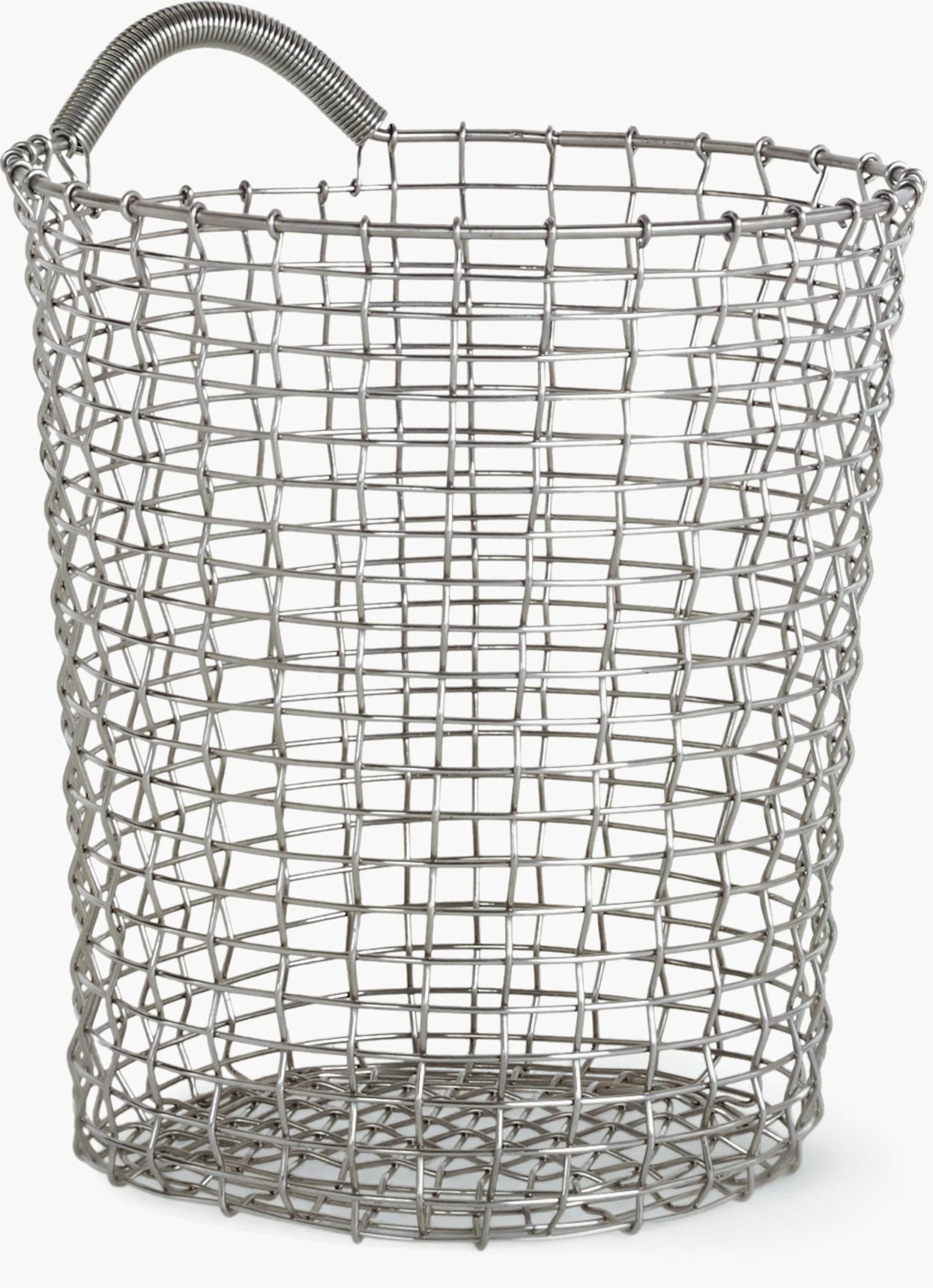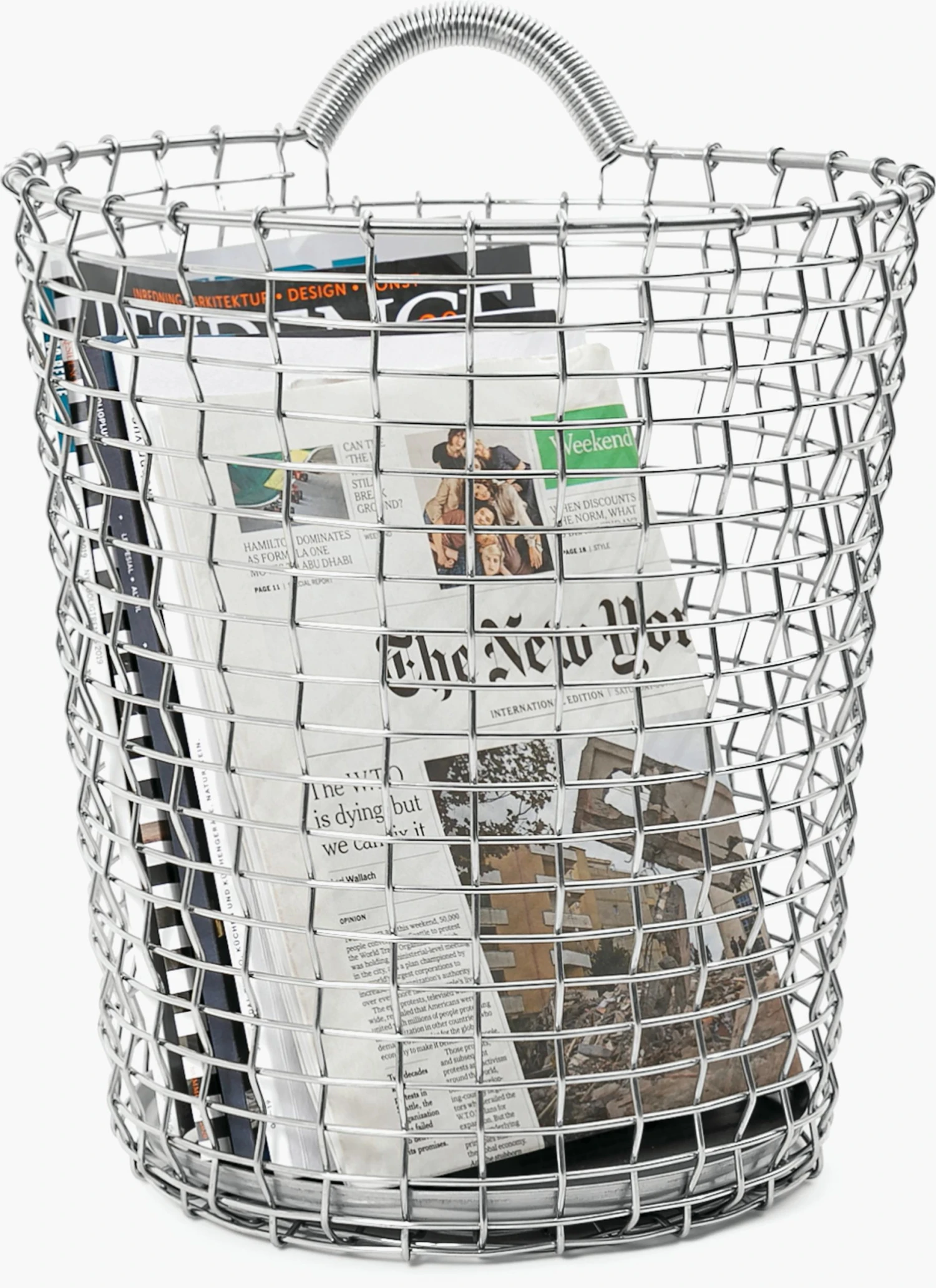 Handwoven from a single strand of wire, the Korbo Handmade Wire Basket (1922) holds everything from laundry to tools. The bin (18 liters) has a handle for wall hanging, and the classic baskets (35 and 80 liters) come with two opposing handles. Choose brass wire that will gradually develop a rich patina or acid-proof stainless steel wire that won’t rust or lose its luster with age. Made in Sweden.