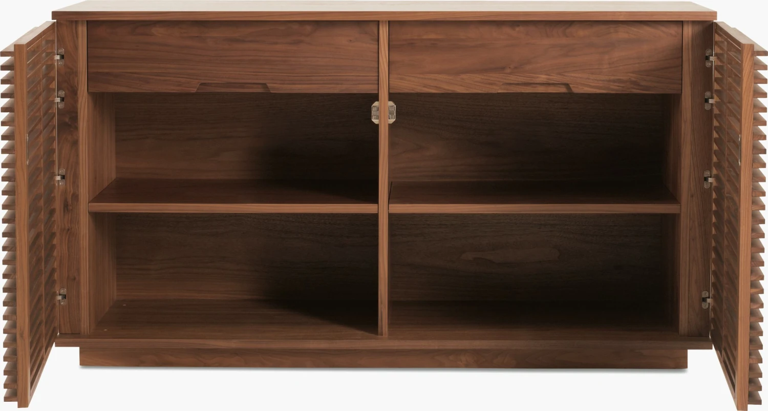 - Through-bottom cord escapes so credenza can float within a room.