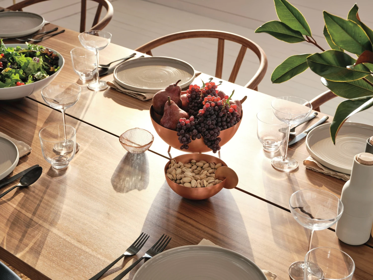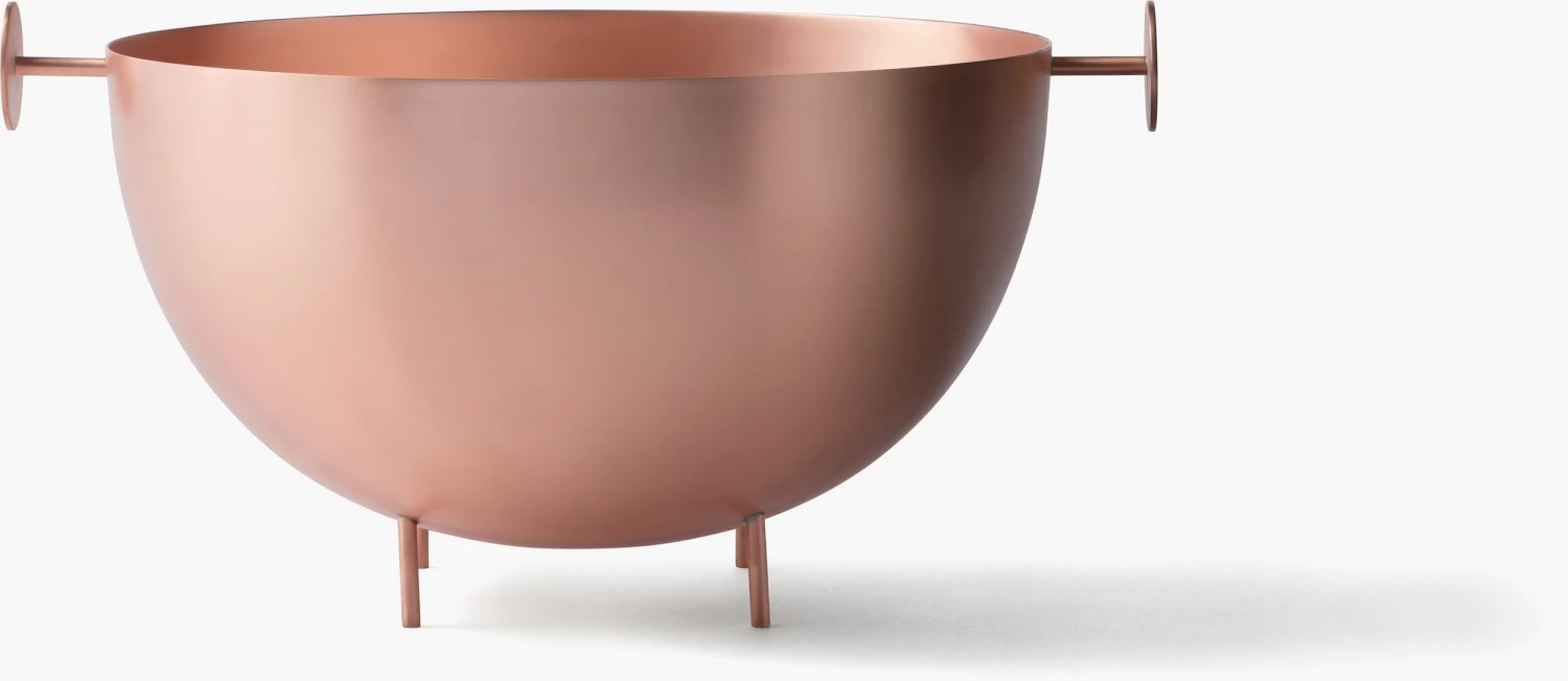 Putting some fun in functional, each of the Red Moon Bowls (2017) has its own personality: the smallest features a handle that looks like a fruit slice, the medium sits upon little stick-like legs, and the large pairs those legs with handles that mimic outstretched arms. All the containers are handmade, fashioned from copper and coated with a clear lacquer to minimize oxidation. Part of Elisa Ossino’s Lunar Landscape collection, each bowl is sold separately. Made in Italy.