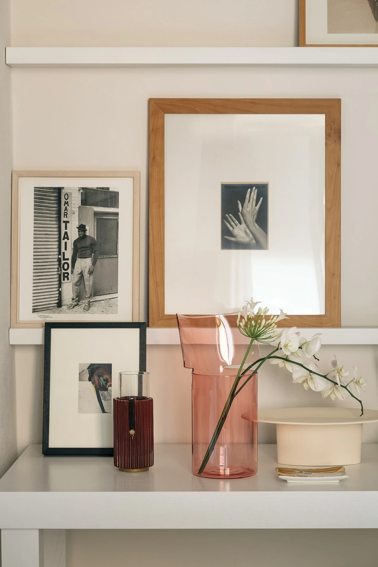 - Contemporary borosilicate-glass vases in a range of sizes, colors, and heights.